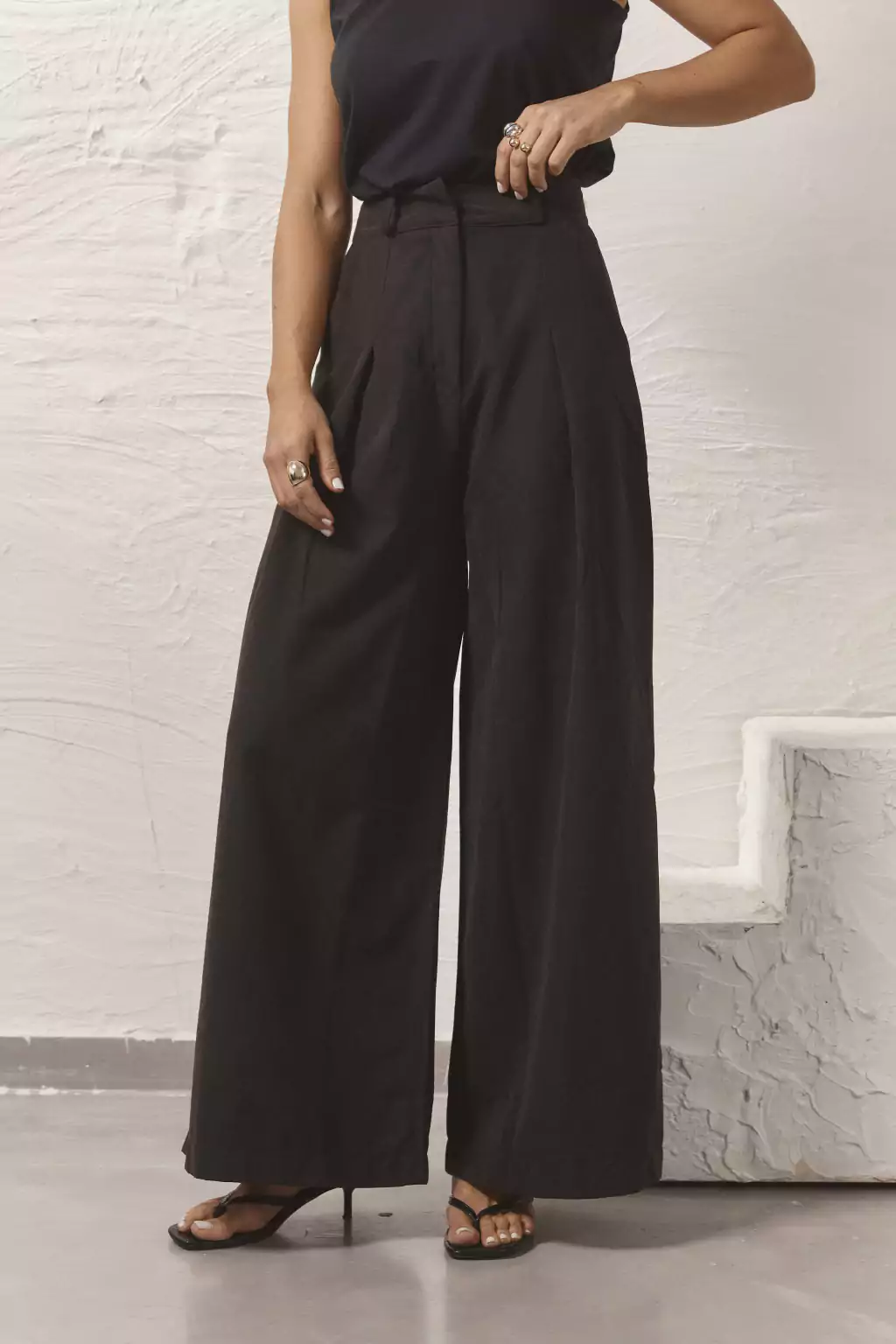 Pantalón sastrero ancho confeccionado en Cupro pesado que le da una caída super suave y fluída, al tacto se siente como una piel de durazno; tiene la cintura interna envivada como detalle de terminación y acceso mediante cierre y 1 boton invisible.
