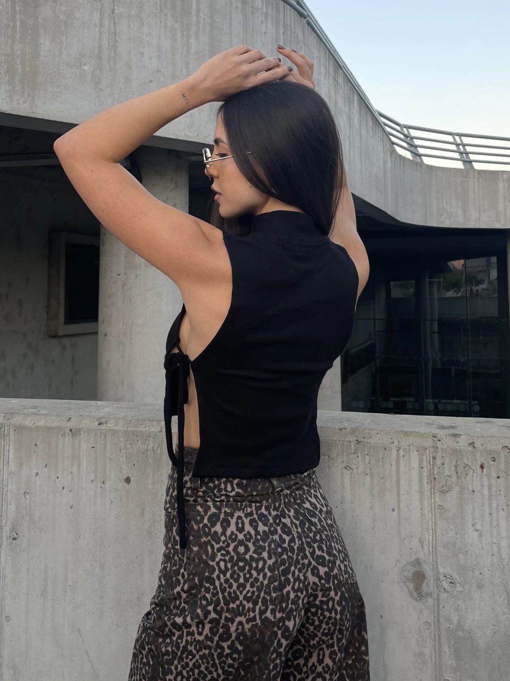Pechera de lanilla con cuello polera y tiras para atar en los costados y regularla a tu gusto. Podés usarla sola, con una remera manga larga o incluso arriba de una camisa manga larga. Viene en Negro y Marrón.